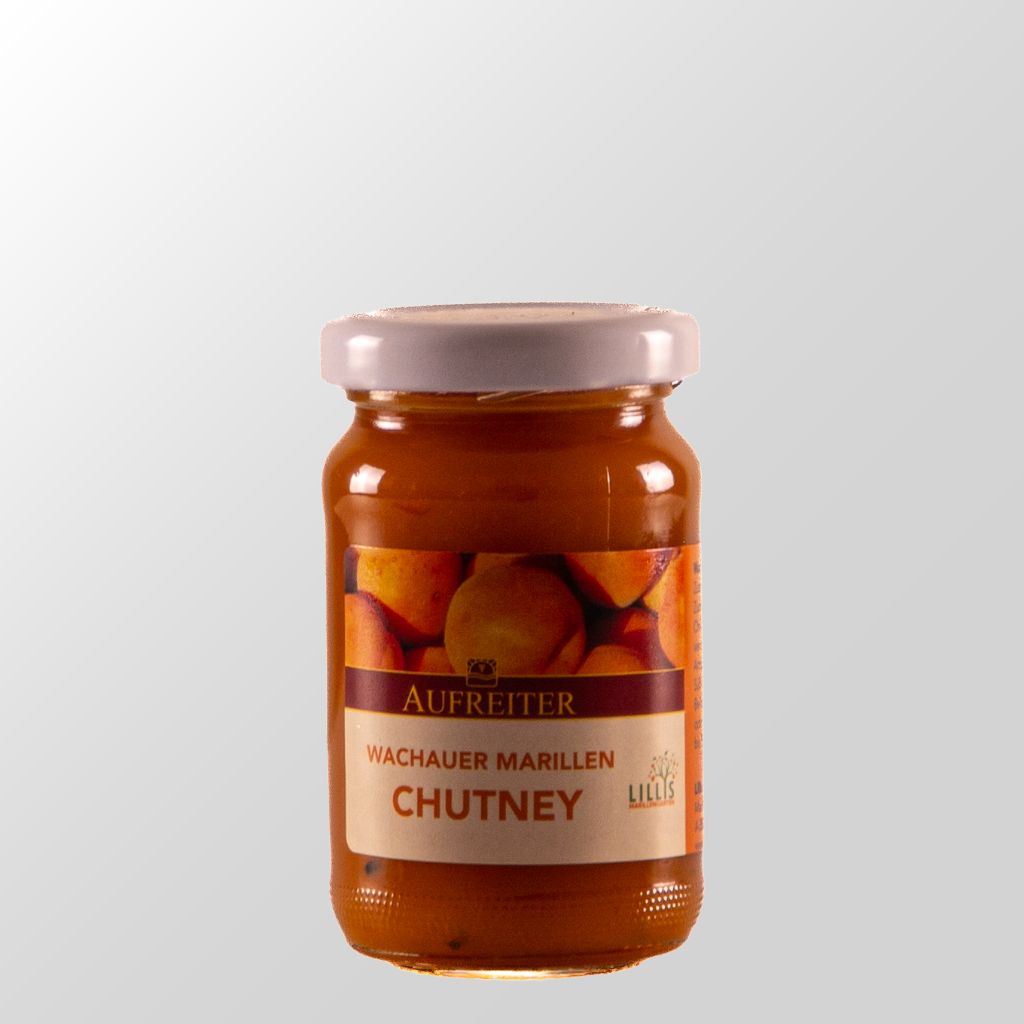 Dieses süß – sauer – scharfe Chutney bereiten wir aus voll reifen, handverlesenen Wachauer Marillen und unserem würzigen Grünen Veltliner zu. Chilifäden und grob gemahlener schwarzer Pfeffer harmonieren wunderbar mit den Hauptzutaten und garantieren ein Geschmackserlebnis der besonderen Art! Das Wachauer Marillen Chutney ist in der Küche vielseitig einsetzbar, besonders zu kurz gebratenem oder gegrilltem Gemüse oder Fleisch Reisgerichten vegetarischen Snacks oder Burgern Schnitzel geräuchertem Fisch oder (Roh-)Schinken wunderbar auch zu jederlei Käse….